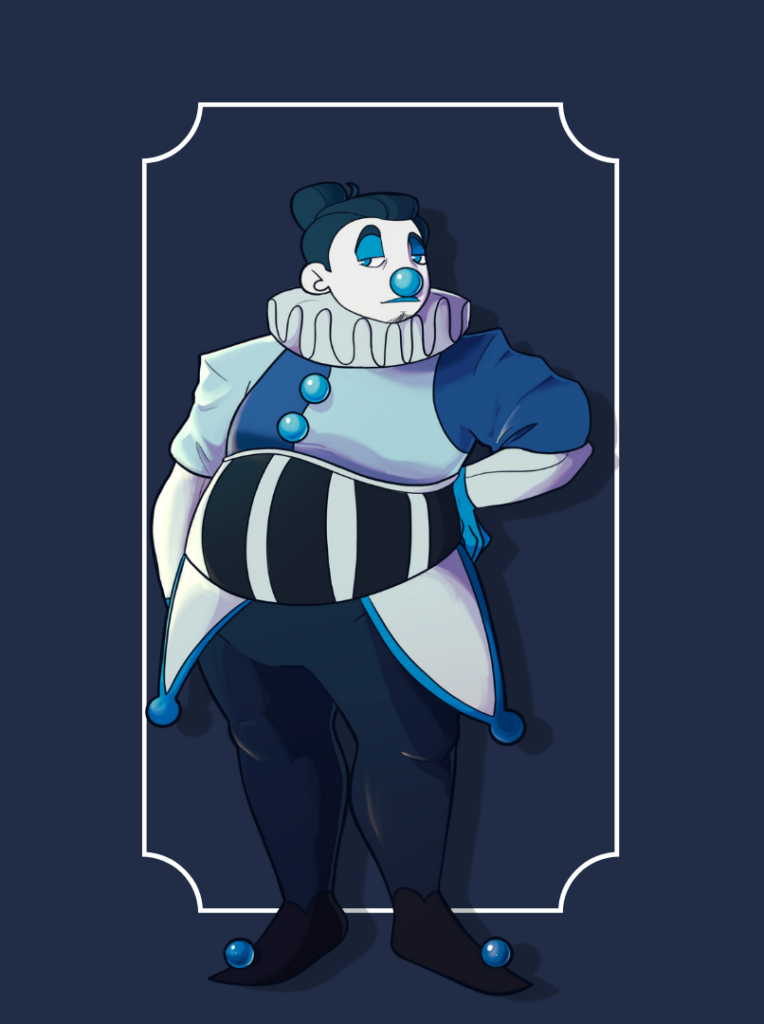Blorbo is reportedly a laid-back Party Clown with a little Sad Clown mixed in there. He is very methodical and concerned with safety regulations like a schmuck. He has an artistic streak, enjoying painting, but he rarely has time to do so given his current endeavour to have the circus unionize. He has thus far been unsuccessful, but go get ‘em, champ!